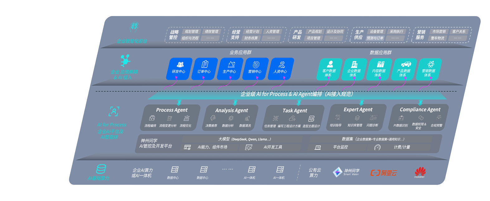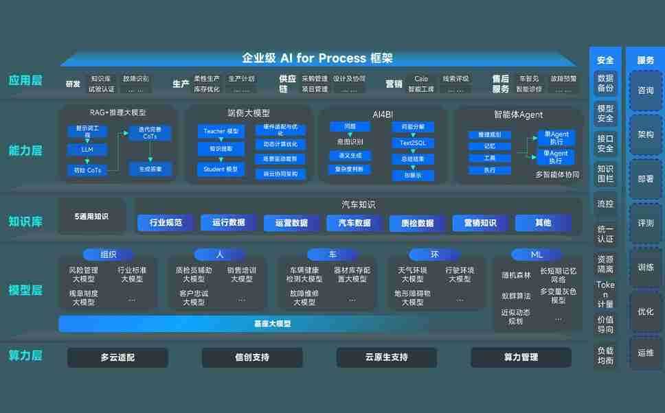 端到端的一站式AI工作空间深度融合了从企业战略规划到日常经营的全流程业务板块,,定向解决车企内部领域多、、部门多、、、链条长、、、场景碎片化等难题,,,,支持车企快速构建以AI为核心的生产力写作体系,,,实现任务执行与AI能力的无缝集成与交互